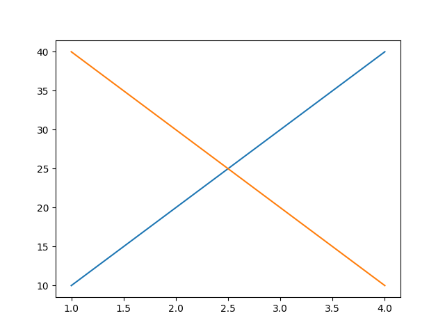 import matplotlib.pyplot as plt x = [1, 2, 3, 4] y1 = [10, 20, 30, 40] y2 = [40, 30, 20, 10] plt.plot(x, y1) plt.plot(x, y2) plt.show() # Output: # Two line graphs in the same chart